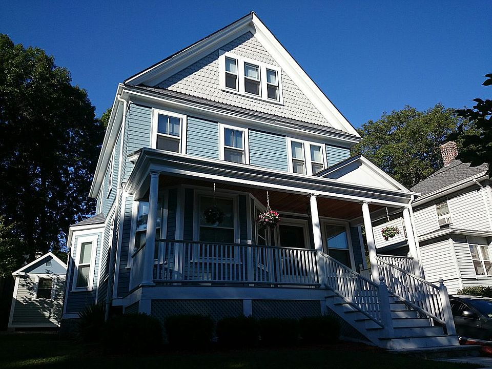 Meticulously maintained with superior upgrades, fabulous front porch, grand foyer with large entry closet, high ceilings + spacious rooms with period detail, french pocket doors divides the living room + dining rooms, dining room has fireplace with gorgeous mahogany decorative mantle, large family room with bay window, updated kitchen with top of the line appliances, quartz countertops and large island, updated bathrooms, walkout to gorgeous large back yard, huge covered 2 tiered deck with columns, oversized shed has electricity (perfect for studio, hobbies), 3 spacious 2nd floor BRS + office, 3rd flr offers 2 additional bedrooms, walk to commuter rail, etc. fantastic location, a jewel of a property in a wonderful neighborhood! Bonus High velocity AC units!