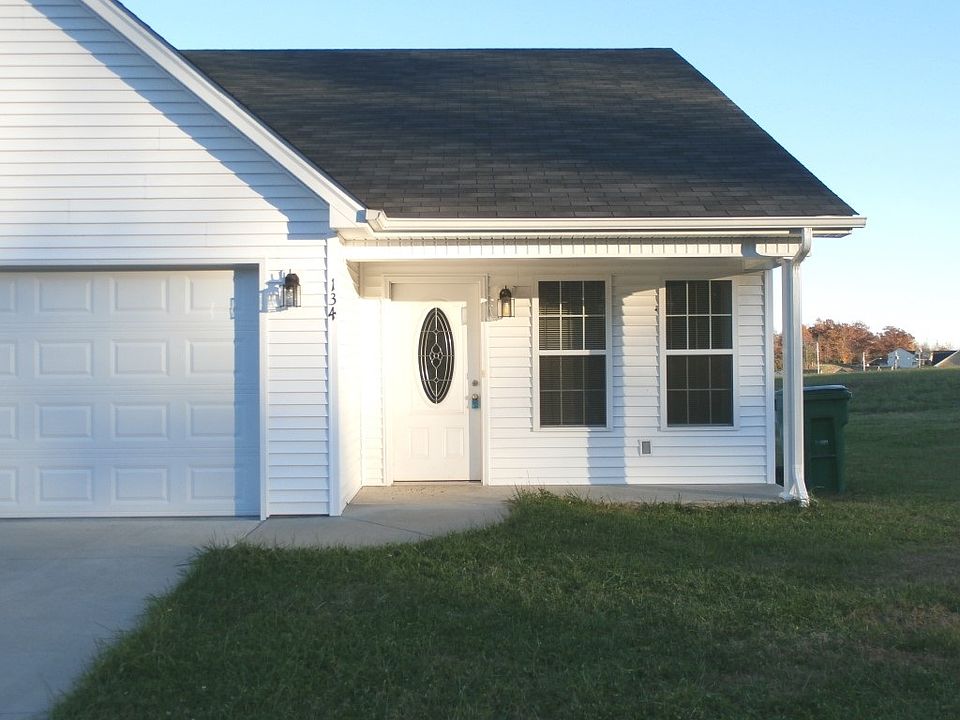 2 bedroom 2 bath duplex in Radcliff. Featuring an open floor plan, bay window in the living/dining area, master bedroom with sliding glass doors to the back patio and a 1 car garage. Only small pets with prior approval and $375 non-refundable pet deposit. Available Sept. 7th