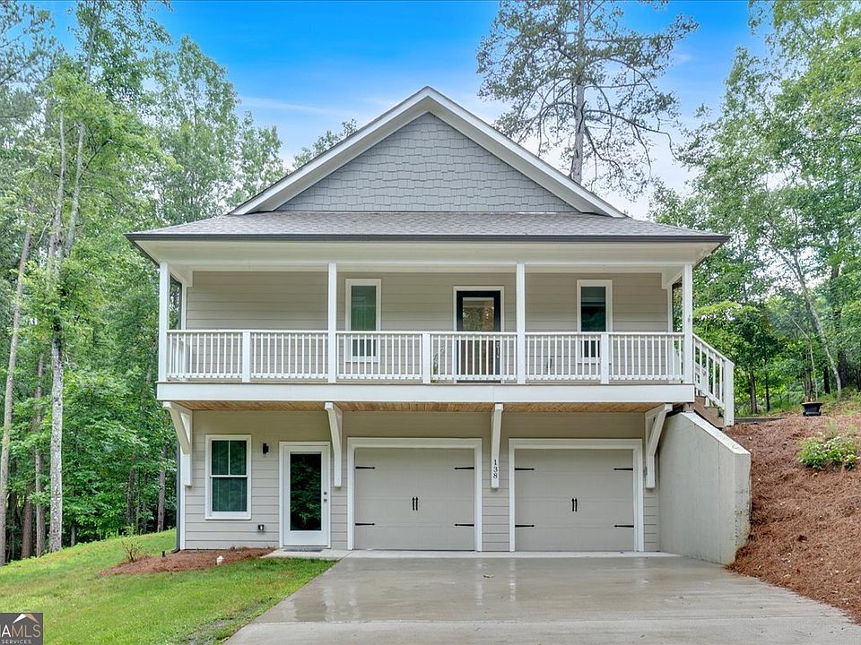 Live like you are on vacation every day or make this your retreat from the City! Gated community with golf, tennis, lake, marina, boat rentals, 2 pools, pickleball, festival space and more! This 3bd/2ba home is freshly painted and move-in ready. Step in from the covered front porch and enjoy cathedral ceilings open from the kitchen to the back of the house. The beautifully updated kitchen has white cabinets, granite countertops, stainless steel appliances and an oversize island with seating. All this is open and flows through the dining area, living space and through double glass doors opening up to the covered back deck. Split bedroom plan with the primary suite on one side with a private bathroom and large walk in closet. The primary bathroom has white vanity, granite countertop and a newly tiled shower. The other side of the house has a guest bedroom, full bathroom, private office, and laundry. There is a bonus room on the terrace level. This suite is a finished bedroom/bonus room, with a closet door opening up to a stubbed bathroom and closet. This downstairs would be a great in-law suite with its own private entrance. It would also make a great vacation rental. The two-car garage is also on the terrace level (main level) for recreational toys. The mountain views are beautiful. Relax on the front or back decks with wooded views or join friends at the fire pit in the backyard. This property is located just inside the back gate so there are no worries about roads being closed during inclement weather. Easy exit to nearby shopping and access to town.