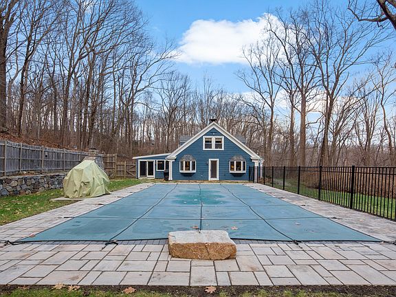 Stunning rare updated New England Cape featuring gorgeous heated in-ground pool with brand new surrounding patio. Old world rustic flare with quality custom upgrades throughout including newer roof/gutters, air conditioning unit, newly updated designer bath, 3 year old paved driveway & blown-in insulation. Breathtaking and bright gourmet eat in kitchen features white granite counters, basket weave marble backsplash, high end stainless steel appliances, cool wine fridge, double ovens and beautiful bay window. Kitchen window overlooks completely fenced in pool area which is enhanced by stone fireplace perfect for outdoor entertaining. Many special features including huge rare original stone wood burning fireplace with pot handle and wood mantle, wide plank floors, exposed beams, walls of windows, original curved wood spindle staircase, authentic doors, variety of textured walls and skylights. Rustic blend of elegance and tons of character throughout. Beautifully renovated baths, spacious unique sun drenched bedrooms and open floor plan. Inviting home with vestibule and easy walk outs on main level to pool and level yard! Shed, extensive custom stone walls and huge level paved parking area all in private surroundings. Great NY Commute 5 min to Metro North in southern Bethel.