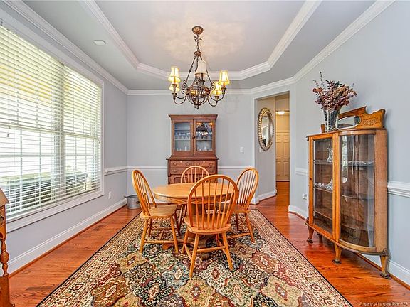 This custom quality built single family home contains beautiful landscaping and a detached third car garage. The property is on a private cul-de-sac. It features a screened in back porch, and has a separate patio area. The interior has beautiful hardwood floors, an office space, and a spacious owner's retreat with on-suite along with other well designed rooms downstairs. The upstairs has a bedroom and a bonus room with a walk-in closet as well. This house is less than 30 mins. from Ft. Bragg, shopping, and restaurants. Front and Back Porch Furniture and Armoire in office can be negotiated with seller.