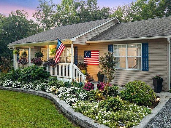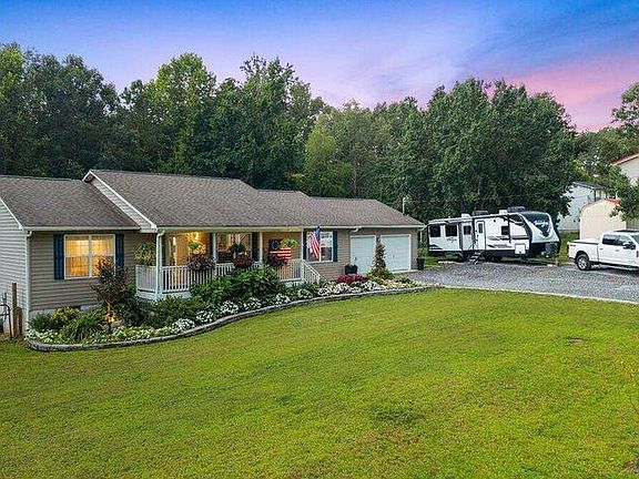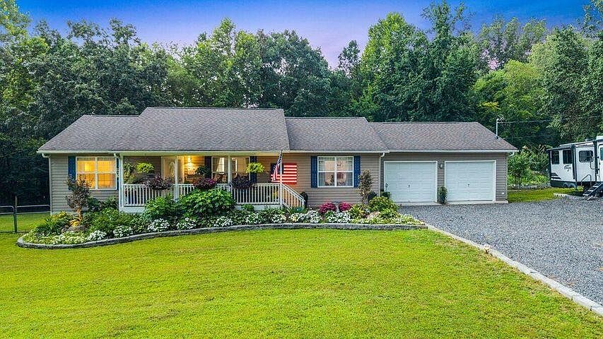 This charming one-level ranch offers the perfect blend of comfort and country living, featuring 3 spacious bedrooms and 2.5 bathrooms across 1,400 square feet. Inside, you'll find beautiful hardwood floors, tile accents, and a cozy fireplace that adds warmth and character to the living space. Step outside to your own mini farm oasis, complete with ducks, chickens, a well-maintained chicken coop, and a refreshing swimming pool surrounded by expansive decks—ideal for relaxing or entertaining. An oversized garage provides ample storage or workspace, making this property the perfect combination of rural charm and modern convenience. The property is thoughtfully designed for both functionality and relaxation, featuring RV hookups for electric and septic, an encapsulated crawlspace and a fenced back half of the property for added privacy. Enjoy warm days by the 12' x 24' above-ground pool complete with a pool deck and a convenient outdoor toilet and sink nearby. The beautifully landscaped yard includes 21 fruit trees, 11 blueberry bushes, 16 lilac trees, and vibrant flower beds on automatic irrigation timers. Inside, you'll find hardwood floors throughout the bedrooms, living room, and hallway, with ceramic tile in the kitchen, dining room, bathrooms, and laundry area. The spacious 14' x 30' covered back deck and a classic rocking chair front porch offer perfect spots to unwind. The garage is equipped with a sink and counter, ideal for projects or cleanup. This property also supports a small homestead setup with chickens and their coop, geese, ducks, and all necessary feeding equipment included. A true blend of country living and modern comfort.