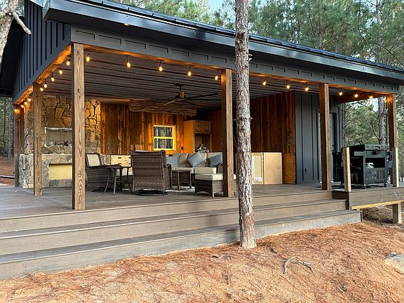 is an open aired and covered 540sqft under roof with additional 300sqft(15x20) composite decking, — granite kitchen, fireplace, powder room, and pond views