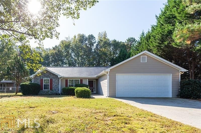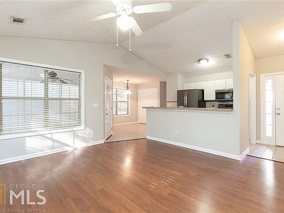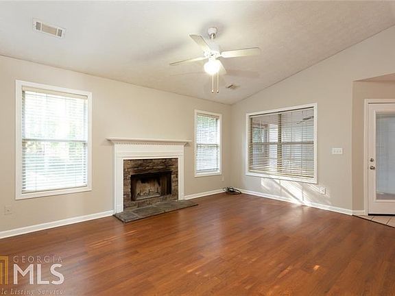 Open kitchen w/SS appliances including side by side fridge, built-in microwave and new dishwasher views the vaulted great room w/stacked stone fireplace. 2" blinds through-out. Dining room leads to covered porch w/access to level, private, wooded backyard. Master w/large walk-in closet and private bath w/double vanity, garden tub and separate shower. Two secondary bedrooms share the hall bath. Pets negotiable w/$500 non-refundable deposit.