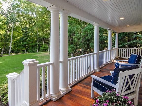 Enter this private lane to this almost new and impeccable home. With spacious rooms bathed in sunlight, this home draws you to its comfort and charm. Lovely and peaceful wraparound porch, three car garage and beautiful flat property with soothing sounds of the river. Third floor has a bedroom and full bath and cedar closet. There is an additional closet plumbed for a bathroom, and there is an additional room which can be converted to suit your needs. A pleasure to show and a convenient location close to the village and schools. House is also equipped with generator hookup.