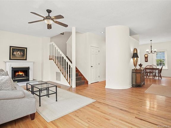 Wonderfully updated, bright, one-bedroom end unit in coveted Woodfield Village Condominium Complex (Fairfield). First level offers an open floor plan with updated kitchen, dining room and family/living room. Kitchen offers cherry cabinetry, center island and all new stainless-steel appliances. The dining room offers large bright windows, brand new chandelier and is spacious enough for a dining table that seats 4-6. The front entryway/foyer flows into large family/living room with large windows, ceiling fan and a gas fireplace with mantel. A half bath and laundry in hall closet completes the main level. The upstairs features one spacious bedroom with a full bathroom. Large walk in closet with additional storage space. Large bathroom has jacuzzi tub and stall shower. Beautiful covered flagstone patio completes this wonderful unit that is just steps to heated pool, tennis courts, clubhouse and parking garage. Onsite property management. Short drive to Universities, beaches, lake, hiking trails, golf courses, shopping and restaurants. Just minutes to TWO of Fairfield's Metro North train stations.