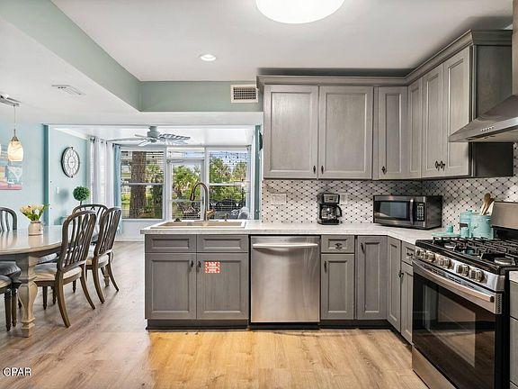 This is a 2 Bedroom 2 bath townhouse located in Gulf Highlands Beach Resort - one of the most popular family-oriented resorts in Panama City Beach. No waiting for an elevator or looking for a parking spot in an enormous parking garage here! This fully furnished unit is located close to a dedicated beach access. INot one but 2 assigned parking spaces right outside of your front door. Gulf Highlands Beach Resort is a gated community, offers many amenities including a Beachside Pool & Clubhouse, 11 other pools (5 Heated), 4 tennis courts (2 Lighted), 18 /hole Mini Golf, Shuffleboards, dedicated beach access with beachside pool and clubhouse. Association fee of only $316 per month that takes care of all these great amenities plus basic cable, WiFi internet, and pest control! Age, Square Footage, HOA fee, and room sizes approx., if important please verify.