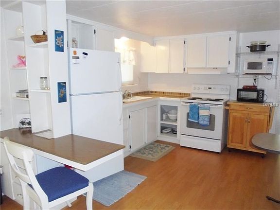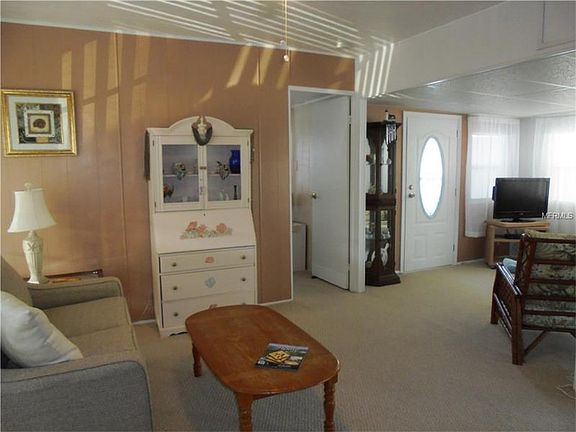 Adorable, upgraded and with a lake view! This house is clean, furnished and located on one of the lakes. Two bedrooms and two baths and all the necessities you need for a comfy home. A large kitchen/living room combination gives you plenty of space for everyday living. The bedrooms are a split plan and the master bedroom overlooks the lake view. Each bedroom has its own bath. Additionally, many updates have been done. Brand new Mitsubishi ductless heat and a/c in 2016. Electrical updated to code in 2016, along with a new outside pedestal and meter. All new plumbing in 2016. Shed plumbing was reworked and shed expanded in 2010. Hot water heater, washer, dryer and laundry tub are in the shed. Two new awnings, new vinyl siding and a new vapor barrier in 2016, along with fresh paint on the interior and exterior (even the driveway got a new coat of paint). All exterior doors are new, all have dead bolts. Two new ceiling fans and some of the windows are new. There is a patio in back, complete with a grill, where you can enjoy evenings by the lake. Make this one your new Florida home!