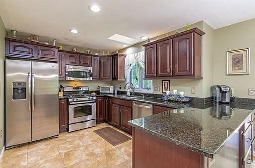 - Kit Dscrp: Pantry, Dining Area, Countertops - Stone/Granite/Solid, Cabinets - Upgraded, Deck - Exterior, Skylight, Flooring - Stone/Ceramic Tile, Stainless Steel Appliances, Open Floor Plan, Recessed Lighting, Countertops - Upgraded