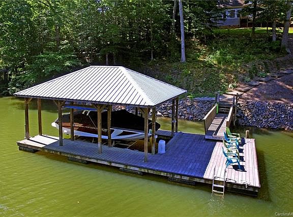 Motivated Sellers! No need to go on Vacation! You can Relax and Recharge here in your Fabulous, Move-In-Ready, Fully Furnished, Waterfront Home! NO HOA. This fabulous home perched on a slightly sloping lot that offers DEEP WATER all year round. Quiet Wide cove perfect for swimming/boating or just being on the lake. Located near Lake Norman State Park, downtown Troutman & Mooresville. Bring your lake Toys you will love entertaining on your lrg composite wood deck or floating pier, taking in the awesome views and gorgeous sunsets. Covered Boat Slip & Lift 6800 lbs. Open floor plan, majestic 2 story foyer opens to Dining rm & 2 story Great Rm w/Stone Fireplace, built-ins; Lots of Natural Light, Lrg kit, SS appliances, Granite counters, 42 inch cabinets, soft closure. Master suite w/New Carpet.Wood Floors on Main. Lrg secondary bdrms & Bonus rm full bath. New Lower HVAC unit 5/2018, Upper unit installed in 2015.Additional walk-way from deck can be installed with sitting area down to dock.