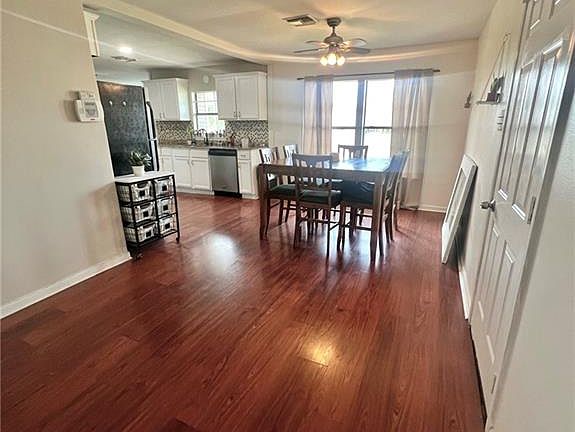 Welcome home to this quaint cottage that features 3 bedrooms and 1 full bath! Your kitchen is open to the living room and dining room! The dining room has a connected area that can be utilized as an office, entertainment space, and more. The primary bedroom is a nice size along with the 2 additional bedrooms! Primary and second bedroom are carpet the third bedroom and rest of the home are laminate wood! Great starter home move in ready! Schedule your private showing today!