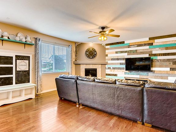 This is the home you've been waiting for! Located on a beautiful corner lot, this 4 bed, 3.5 bath comes with 2,351 finished square feet and full unfinished basement. Once inside, you will find an office space with beautiful french doors. A few steps in you will find a large open concept living room, dining room and kitchen with large island! The kitchen boasts amp storage with beautiful maple cabinets paired with coordinating back splash, granite countertops and stainless steel appliances. The main floor is prewired for surround sound. Upstairs, you will find a large master bedroom with 5 piece bath. Bedrooms 2 and 3 share a Jack and Jill bathroom and bedroom 4 has it's own personal bathroom. Enjoy Colorado's beautiful evenings on the large deck. Community pool and club house are a few blocks away. Plank wall can be easily removed by sellers per buyers choice. Schedule your showing today!