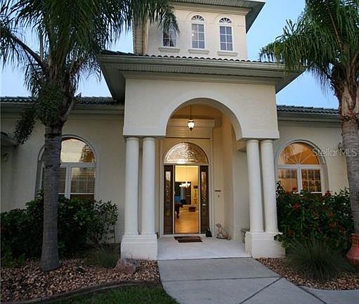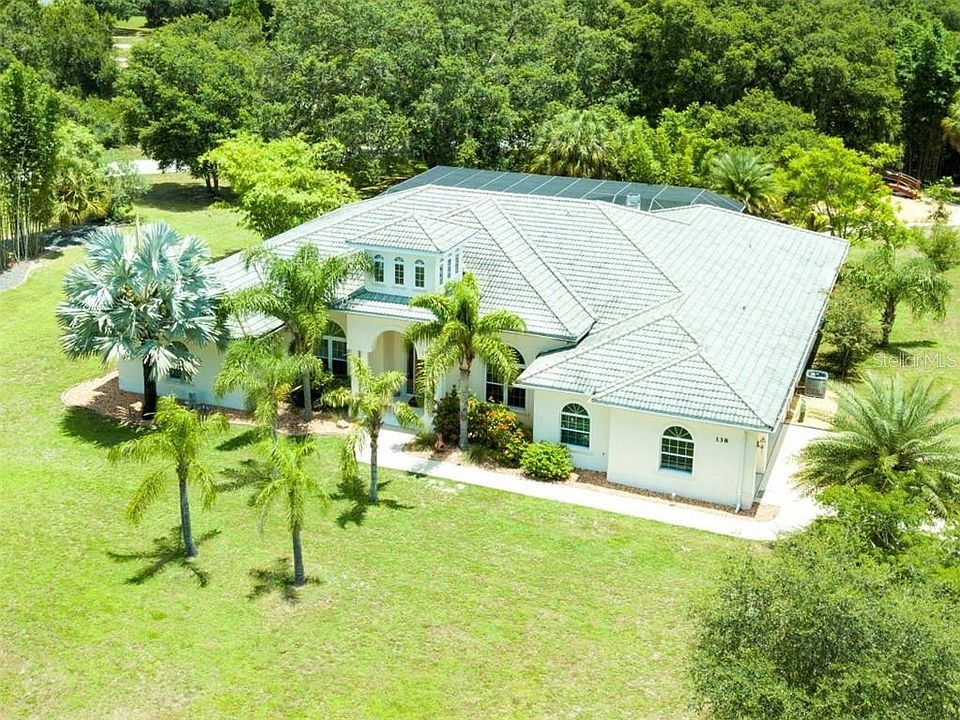 Everything about this home is on a Grand Scale, and the exterior has just received a fresh coat of paint! High 11-14' ceilings, Plenty of room to breathe and extra storage and space available. 4 Bedroom, 4 Bath, 3 car garage, custom home with 6,217 sf under roof and 4,528 sf under air. New A/C. The home faces Southwest on 1.6 acres and can also be sold with a vacant canal front lot across the street for a private fishing spot. Ask for details, more adjacent lots are available. The beautifully landscaped property just received fresh rock to replace the mulch. At the rear of the property, shaded by oak trees, a 10' high earthen berm covered in lush green ferns creates a "Secret Garden". It is a dreamy oasis, a cool place on a hot afternoon, with soaring branches draped in Spanish moss, forming an overhead canopy. Nearby, a beautifully refreshed rock garden area gives home to an iconic Eastern-inspired Moon Bridge. The property, the house, and the pool all offer you a peaceful, tranquil setting while being only 5 minutes from shopping at Murdock Circle. The Party-size, 9' deep, heated pool, with jetted spa, features a sun shelf for lounging complete with an umbrella socket, as well as a new pump & heater. A cement block Privacy Wall surrounds the pool. Inside the home, elegantly lit trey and vaulted 10-14' ceilings with pendant lights, recessed lighting, lighted ceiling fans and skylights offer plenty of light any time of day. The Formal Dining Room, Living Room and Family Room with large gas fireplace, all have sliders to the pool. The kitchen is equipped with rich dark granite counters and warm honey-brown wooden cabinets. The BRAND NEW REFRIGERATOR adds to the set of GE Profile stainless appliances and the extra-large breakfast bar comfortably seat up to 6 guests. There is a great view of the pool area - and the mature trees in the back yard - through the Aquarium glass window in the kitchen dining area. You'll love the many CUSTOM FEATURES, such as a HUGE WALK-THROUGH BUTLER'S PANTRY, DOUBLE 12X6 WALK-IN CLOSETS in Master Suite, and a STORM SHELTER/ PANIC ROOM. Master Bedroom is very large, with LIGHTED trey ceiling and spacious Ensuite bath, featuring granite dual sink counter top, jetted tub, a separate water closet, an extra-large WALK-IN linen closet, and a Roman Shower. This home was well built, with 10" thick reinforced concrete core, 6" slab, spray foam insulation in attic, and a tile roof, freshly cleaned. Impact resistant front Palladian windows, easy ELECTRIC roll down HURRICANE DOORS enclose the lanai, and removable shutters provide hurricane protection throughout. New vinyl coated chain link fenced rear yard with two gates and a BRAND NEW 10X16 GARDEN SHED. The FULLY REINFORCED concrete interior SAFE ROOM is accessible through both the master suite and the den. Home is currently getting new exterior paint. Be sure you see the virtual tour of the house and the gorgeous backyard.