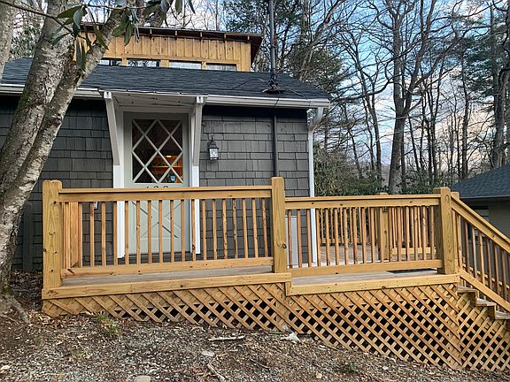 Newly renovated cottage surrounded by trees with multiple decks for outdoor living spaces/enjoyment blended with interior warmth/comfort. Located in quiet, well-maintained area. Beautiful wooded setting, very private. Upstairs open sleeping loft/work space; separate living room downstairs. Spiral stairs. Lots of attention to detail with exposed wood beams, hand-crafted kitchen countertops/shelving, all new appliances, tiled bath. Extra storage in basement area. Parking on site, no cost. New washer/dryer in unit. Water included. Only 15 minutes to downtown Boone, 5 minutes to Blowing Rock. No smoking. References required. Showing upon request. Water included in rent, parking included in rent, strict no smoking