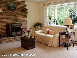 LIGHT BRIGHT AND SPACIOUS! Updated in 2009, this absolutely lovely home is a pleasure to show!!! Has new carpets, spacious kitchen, beautiful brick fireplace with propane heater, good closet space, and a 10x24 4 season room for added charm or Great family room! Open those French doors and extend your living space! Great location for commuting into Stroudsburg and beyond! Quiet road and community sewer complete the picture! See photos!