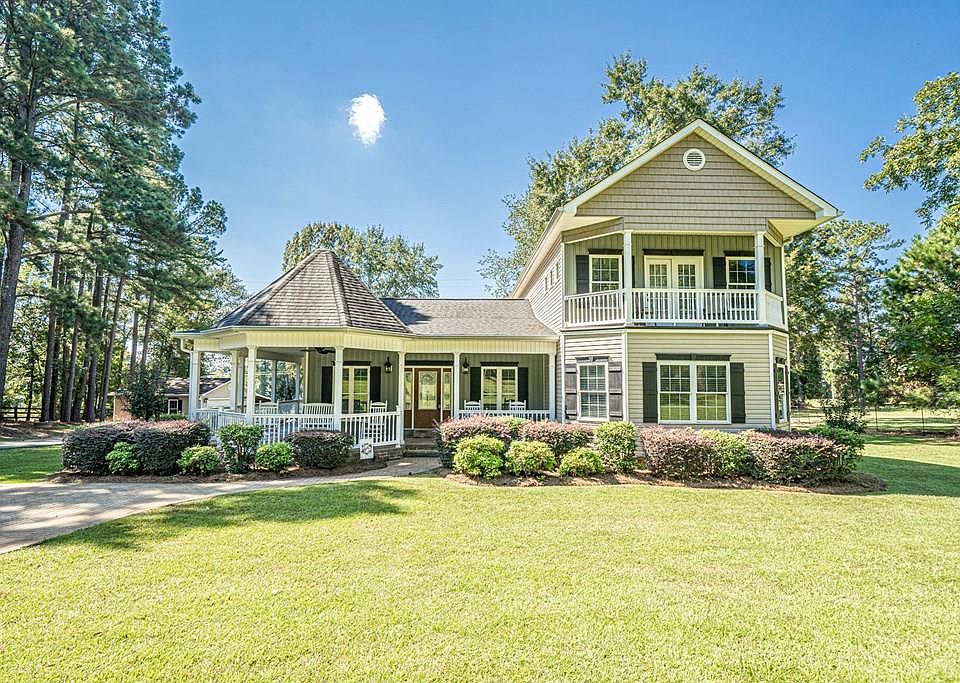 Looking for plenty of room for family and space for the kids to play? This is it! With over four acres of space to spread out, AND on the lake, there's no reason for the kids to be bored. This wonderful lot is truly rare. The home has an open floor space with a large kitchen/dining area, owner's bedroom on the main floor, and two bedrooms and a full bath are upstairs. There's a wrap around porch with a fireplace on lake side for these wonderful fall evenings. The huge back yard is perfect for games for the kids to run. There's a max boathouse/dock and a guest cottage next to the water with a partially covered deck. The cottage is 432 sf and can sleep two. Have a kitchen and full bath. There's also an outside fireplace by the lake to enjoy while watching a game on the deck. Motor home hookups are available next to water, near guest cottage. Seller also pays $100 per year for a Ga Power strip lease to have access to the wooded waterfront area on right of boat ramp. The property does have its own lake front access of 100+ ft. Strip lease is just leased so seller can maintain appearance of lot/area behind his home. Ga Power property is not included in total acreage. Home is being sold furnished except for personal items and some knick-knacks.
