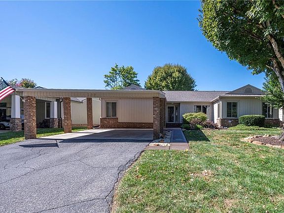 ONE LEVEL living in Spyglass Hill in Bermuda Run! This is the one you have been waiting for~ lots of updates and golf course views! Updates include recent roof, hot water heater, solid surface countertops, new carpet, LVP, new windows and some doors! This home also features three newly remodeled baths with custom tiled showers and cabinetry! Wonderful living spaces that include a vaulted great room with fireplace and a huge sunroom with views of #17 fairway and green. This unit has vinyl siding for more maintenance free living. Spyglass Hill does not require membership to Bermuda Run Country Club but does feature a neighborhood pool just for its residents! Membership is avail and BRCC offers two 18 hole champion, tennis and pickleball courts, pool and slides and lazy river along with dining at both clubhouses. Access to healthcare and I-40 are just minutes away. Bermuda Run is consistently recognized as a great place to live!