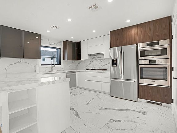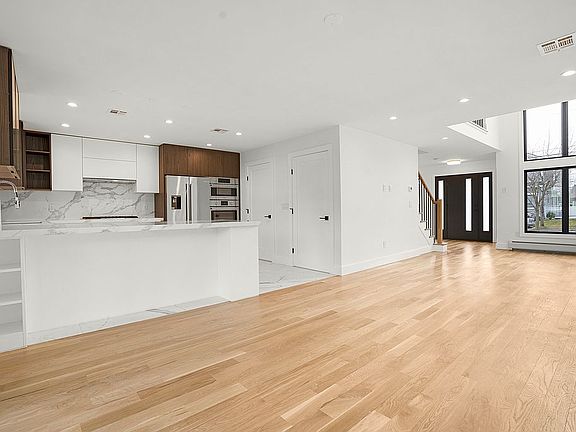 WOW! Live in Style in this Custom Colonial with the best of finishes. Be the first to enjoy this Quality Construction rebuilt from the ground up. Curb appeal invites you in. Large foyer welcomes your guests. Living Room with 2 story ceiling is open to Dining Area and Stunning EIK w Pennisula, Bosche SS Appls, Poreclain Tiles/Ctrs and large Pantry. Half Bath completes main level. Second level with 9ft ceilings offers a Master Bdrm Suite with sizeable, organized WIC and Private, Oversized Full Bath with Double Vanity and Double Shower; 2 Additional Bdrms each with organized WIC; Main Full Bath with Double Quartz Ctr Vanity and Tub/Shower. 2nd Flr Hallway overlooks LRm below. Finished Bsmt w Rec Rm and 2nd half bath for additional living space. Interior sq ft appx 2575 w basement. Enjoy the outdoors sitting on your brand new Trex deck with Pergola. Garage for convenient covered parking. Gas line for easy BBQ. Brand New Sierra quality windows, Wood Floors both levels, Vinyl siding, 200 Amp Electric panel, Gas Baseboard Heating, C AC and so much more. Steps to public bus; near train and highways. One of a kind architect design with you in mind. A MUST SEE!
