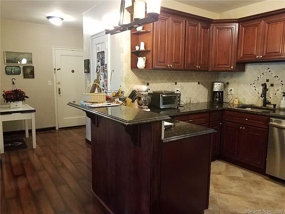 Raised first-floor unit - Beautifully renovated Open floor plan One of a kind at Woodside Green - Kitchen offers cherry cabinetry, granite counters and all Samsung appliances - 2 bedrooms - (master with built-in wall-to-wall closet). Rare find (full newly renovated bath with double sinks) Kitchen and bath floor provides radiant heat. New windows, High energy efficient heating and cooling units. It is conveniently located to the laundry room(access through inside stairs ). Walking distance to Downtown Stamford, supermarket, gym and shopping. Move-in fee is $100. tenant must have excellent credit and job history. It is conveniently located to laundry room and lots of Parking available. Heat and Hot water Included Parking for 2+ Cars Included