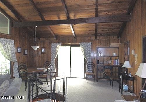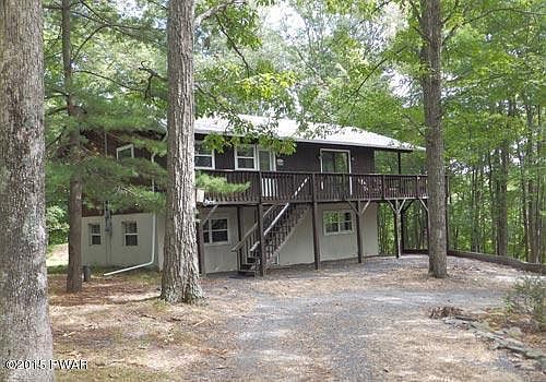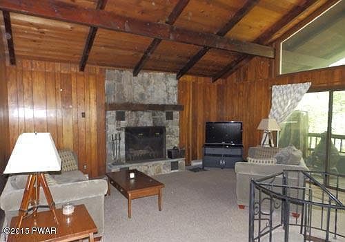 POST & BEAM CLOSE TO LAKEOn a wooded parcel only steps away from lake access, furnished 2 Story features wood beamed ceilings, great room with stone fireplace, dining with glass doors to covered porch, kitchen with appliances, master suite plus 2 bedrooms, large family room with stone fireplace, 3 baths, laundry and decks.