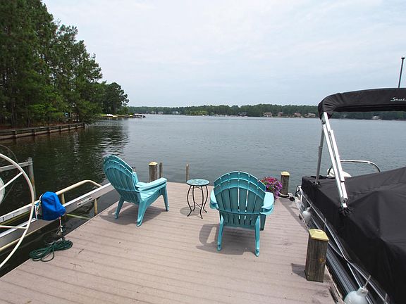 Beautiful views of Lake Auman from almost every room of this lovely brick ranch! You will feel like you're on vacation every day of the year! Large master suite with double door access to a nice composite deck with built-in bench seating and awesome water views! The spacious guest suite 17x16 has a walk-in closet, sliding glass door to a separate private composite deck and more great water views! Hardwood floors and cathedral ceilings in the kitchen, living room and dining room. There is a gas log fireplace in the living room with built-in cabinets and bookshelves. Carolina room is bright with a wall of windows and double glass door to the deck. The kitchen has nice stainless steel appliances, breakfast bar that opens to dining room and breakfast nook with a bay window. There is a