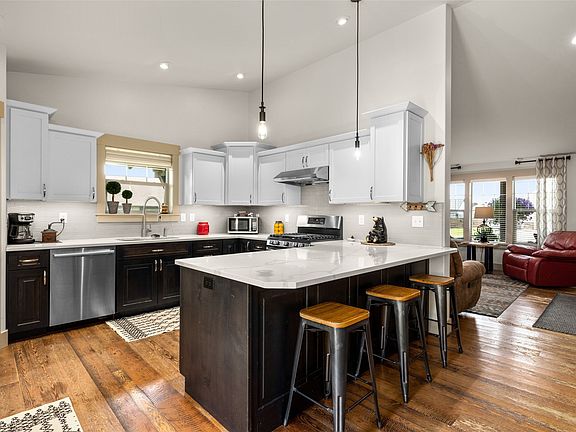 NEW PRICE!!!! $10,000 SELLER CREDIT for the floors or buyers can use toward prepaids, closing costs, rate buy down etc!! Absolutely beautiful custom home located in Silverbrook Estates. Gourmet kitchen with custom cabinets, quartz countertops, full custom backsplash, pantry, under counter lighting and stainless GE and Bosch appliances including a gas range. Welcoming living room features a natural gas stone fireplace perfect for keeping you cozy. Large main level master suite features his and hers walk-in closets, custom tiled shower, tiled floors, quartz vanity and Moen Voss fixtures along with a private covered stamped concrete patio with a hot tub. Attached three car garage with epoxy floors, built in storage, hot and cold utility sink and hose bib. Premium park side mountain view lot with stunning landscaping. Call/Text Stefanie Hanson 406-609-2212 or your real estate professional.