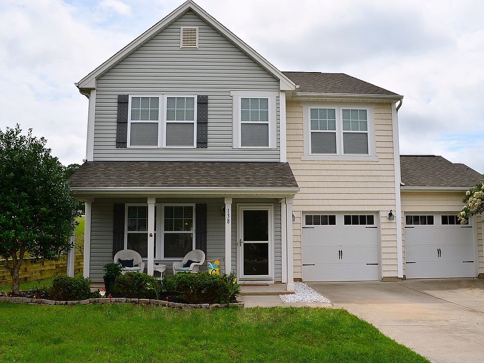 Fabulous one owner home with Great Curb Appeal and tons of upgrades, nestled on a corner lot and boasting 4 spacious bedrooms plus a private lower level office! Gourmet island style Kitchen with Granite, Stainless Steel Appliances and Tile Backsplash, Large Dining Area, Great Room with an amazing open appeal plus Master with Huge Walk-in featuring organizing system. You will enjoy your time out on the rocking chair front porch or entertaining friends out on the back patio. Conveniently located close to restaurants, shopping, interstate and Lowes Corporate. Perfect blend of comfortable living, choice location & affordability! Don't Miss It!