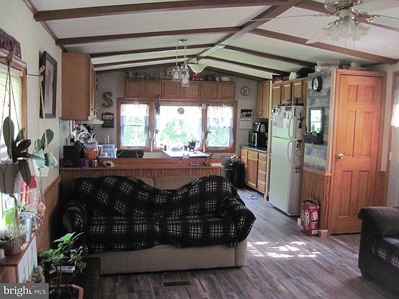Bright and open floor plan with this 1987 single-wide mobile home. There is a 20' x 12' (240sf) frame addition which expands the total living area to over 1160 sf. All this on 1.26 acres of beautiful open and rolling land with woods/trees to the rear and sides. Privacy abounds with home in Longswamp Township. A 12' x 15' wood deck, chicken coop, bonus 4-car oversized detached garage with 2nd floor storage and large macadam parking area round out this property.