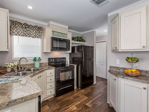 Beautiful new home with oversized front porch, tray ceiling, open living room, dining and kitchen, full bath with walk-in shower and storage vanity, hall closet and good size bedroom with triple closet. Full kitchen comes complete with full-size appliances, plenty of counter space and a dishwasher. The hall closet has hook-ups for a stacking washer / dryer and central a/c and heat complete the package. Don't miss your chance to own in this beautiful, nature-inspired community! If you're ready to reconnect with nature in the Sunshine State, look no further than Holiday Springs RV Resort located in beautiful Spring Hill, Florida. This friendly, 55+ community features an incredible spring-fed swimming pool and a quarter-mile long nature trail. At Holiday Springs, enjoy an array of amenities including pickleball and shuffleboard courts, a beautiful clubhouse with billiards table, library, game table, community kitchen, outside porch and butterfly garden. The images are from our model home.