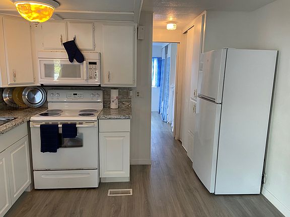 Cottage Style 1 bed, 1 bath mobile home available for immediate occupancy! Conveniently located right off Hwy 19 in Spring Hill! Would make a wonderful second home or full time residence. Recently remodeled. Adorable kitchen with lovely counters and fresh paint! Oven/range and new refrigerator and built in microwave included. Beautiful low maintenance laminate flooring thru-out. Bathroom has tub/shower. Living room has a bunch of windows for natural lighting! Bedroom is cute with accent wall, built in shelves and built in dresser. Nice big deck on the side of the home! Bring your special touches and make this an adorable doll house! Lovely community with one of the lowest lot rents in the area at $495 for full time and $475 part timers. There is a large clubhouse with billiards and pool table. There is a library and restrooms with hot showers. There is a lake, fitness center, nature trails and pickleball. There is also the county's only spring fed pool! Pet friendly with approval. The community is just a short drive to beautiful Weeki Wachee Springs and a little further north is breathtaking 3 Sisters Springs. If you enjoy kayaking I would highly recommend this! This is a 55 plus community. Cash only, no financing,