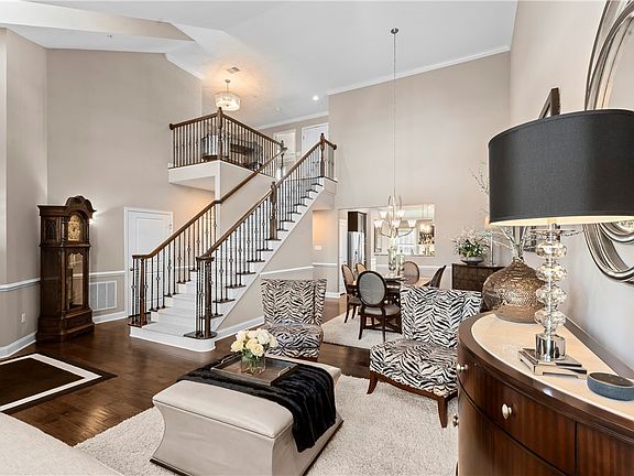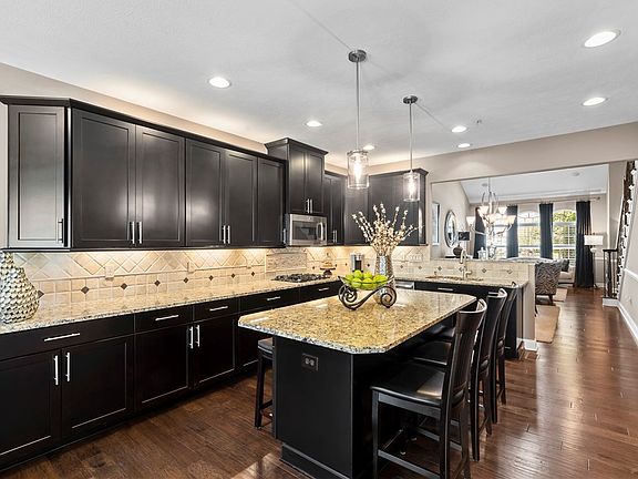 Luxurious home in SUNSET POINTE w/top-end finishes is sure to impress! Gleaming hardwd flrs dec the home’s main and 2nd level. Custom plantation shutters adorn the windows. Timeless custom architecture features incl wainscoting, crown molding, tray ceilings and chair rails add an elevated look. Spacious MAIN FLR MASTER BEDRM w/2 W-I-C*gas FPL w/stunning mantle*spa-like bath w/dbl bowl sinks*step-in shower and soaker tub. KIT is a showstopper w/granite counters*attractive stone backsplash*lower cab w/pullouts*above/under cab lgt*SS app*gas cooktop and dbl ovens. XL island w/storage and seating on both sides. Cozy Fam Rm off Kit w/Gas FPL and access to screened in deck. Private Backyd w/mature trees and landscape lgt. Inviting Liv Rm/Din Rm Combo, Den and Lndry complete 1st floor. 2 lge bedrms w/W-I-C, loft, full bath and storage rm currently used as home office fin 2nd floor. The daylgt LL boasts porcelain hardwd flrs*gas FPL*wetbar*bedrm* full bath*storage area and WO to screened patio