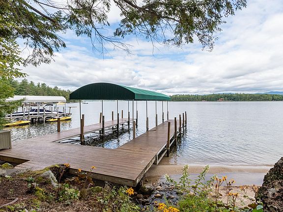 Introducing Eventyr Lodge, a resort-like retreat that offers the sensation of a real life fairytale. This estate is encompassed by over 2 acres of whimsical grounds detailed with a tiered waterfall & intriguing pathways that guide you down to the private Lake Winnipesaukee waterfront & covered dock. The main residence is a true masterpiece classic Adirondack, showcasing uncommon craftsmanship throughout. Designed for entertaining the largest of groups, focal living space is open-concept w/ a monumental double-sided wood burning fireplace w/ gas igniter. The massive kitchen offers multiple refrigeration options, ample prep-areas, and eat-in space including the two gorgeous screened-in porches on both sides of the home. On the top floor is an exquisite office and a stunning guest suite. The West wing holds the oversized primary suite with two walk-in closets, enormous ensuite, fireplace, and porch. The lower level boasts two additional sleeping rooms and media space that walks-out to the lake. Every inch of the home has been professionally decorated with high end; tailor-made furnishings that will remain. Outside the mudroom you can follow along the covered walkway and discover the two separate guest quarters attached to the garage. Tennis players will be thrilled to find the private court on the back side of the property where an incredible carriage house could be built. This unique offering is like something out of a storybook: a private, elegant, and dreamy lakeside home.