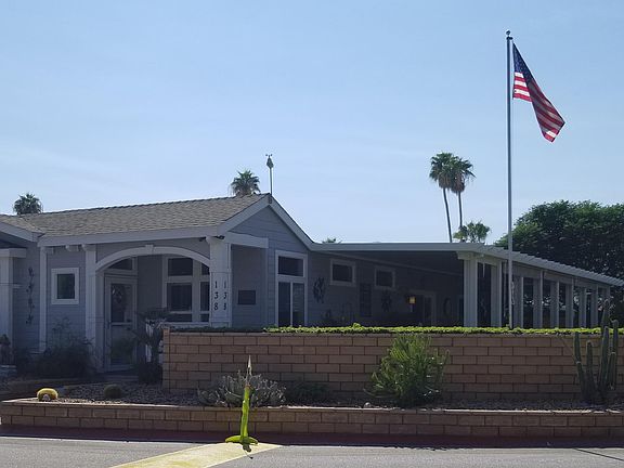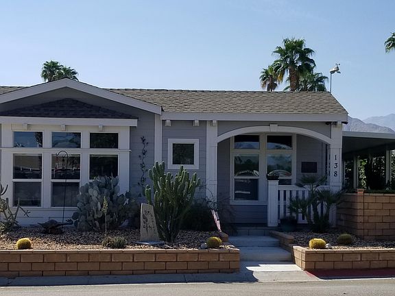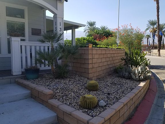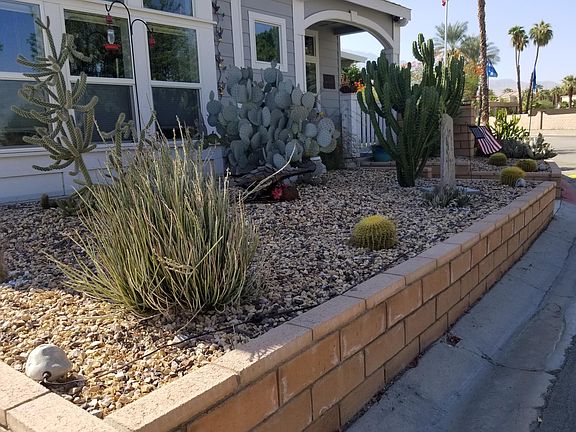 This home is spectacular! Built in 2016, the owners spared no expense in making this a dream home. Beautifully appointed with granite counters throughout, rich water proof wood laminate flooring, crown molding throughout and a multitude of storage. 9' ceilings (tray ceilings in living room, dining room and master bedroom) add to the spacious feel of this home which is bright with natural light from skylights and the many dual paned windows and sliders located throughout. For outdoor enjoyment, this home features a 12' wide cement slab covered patio with ceiling fans and a fully landscaped side yard featuring mature plants, trees and lawn. The SOLAR is owned as is the tankless water heater, the Culligan soft water system and the ADT security system. The outdoor 12' x 12' insulated shed with a roll down door is perfect for workshop, studio or storage. Located in the beautiful setting of Date Palm Country Club, with golf, tennis, swimming, social activities and T's On The Green restaurant/lounge/bar. This home is a definite MUST SEE!!!