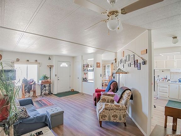 Large expansive horse property with corral and hay storage. Fully fenced 1.26 acre with tidy 2 bedroom 2 bathroom home. Laminate floors, dual pane windows, updated bathrooms with walk in showers. Metal roof. This property has awesome views, wonderful neighbors, and a park like setting in the summer. Enjoy the sunrises and sunsets and ride out into the wild blue yonder right from the house.