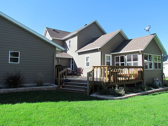 Beautiful 1 1/2 story home with large open concept kitchen/dining room with custom cherry cabinets, living room, bedroom, full bathroom, sunroom off the kitchen overlooking the backyard, laundry and large entry room. 2nd story has 3 bedrooms, full bathroom. Partial unfinished basement, attached oversized two stall, insulated garage with extra parking space. Double lot is .42 acres in size with garden and shed in the back. Large deck with built ins, large yard with beautiful landscaping. This home is newly remodelded interior and exterior. Custom cherry cabinetry and oak trim throughout home. New water softener, AC, and propane forced air heat. This is a great family home. Move in ready!