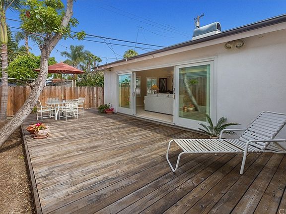Walk to the beach, restaurant, shopping and more from this charming remodeled beach cottage. Gorgeous new bathroom and kitchen featuring quartz counter tops, stainless steel appliances (including Uline wine/beverage cooler), custom cabinets + lots more. As you enter through the Dutch door, this inviting floor plan is light and bright with skylights, dual pane windows (most windows), plantation shutters and engineered hardwood floors. Flexible floorplan was used as a 3 bedroom or can be a 2 bedroom with large family room with fireplace. Master bedroom had cedar lined walk-in closet Second bedroom has a new sliding glass door to the patio deck. Relax on the private back patio deck. The front grounds offer privacy from the street and extra off-street parking. Low Tax Rate (approx. 1.012%), No HOA or Mello Roos!