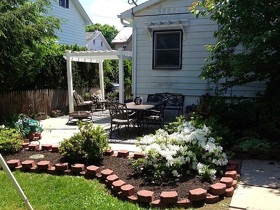 Best of both worlds! A real charmer AND nicely modernized! Plus the huge 24x38 garage with full 2nd floor storage is a Mechanic’s dream. Updated kitchen features granite counters, gorgeous backsplash, stainless steel appliances, laminate floors, butcher block island. New powder and laundry room on 1st floor. Laminate in formal dining room. 3 bedrooms, updated full bath. New roof, windows and stone front. Fenced yard, patio. Walk to pool, playground and library.