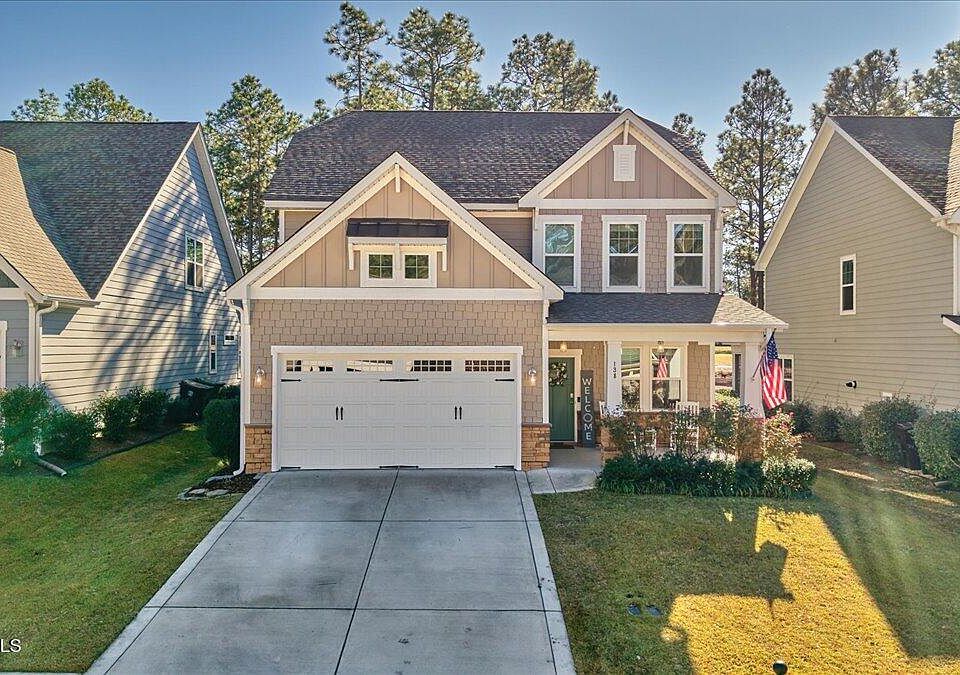 Welcome to 138 Warren Lake Rd, located in the highly sought-after Legacy Lakes golf course community in Moore County. This spacious home offers over 2,700 square feet of well-designed living space, featuring 4 bedrooms plus bonus, and 2.5 baths spread out over 3 levels. The main level of the home starts off with a flex/office space, dedicated formal dining room, and open concept kitchen and livingroom combination, including a breakfast nook. Upstairs, you will find the primary suite, 3 additional bedrooms, with the bonus room (which can act as a 5th bedroom) located on the 3rd level. This well built craftsman home is enhanced with unique features for character and contrast, such as patterned accent walls, and a rustic sliding barn door in the primary bathroom. Set on the scenic 6th fairway of Legacy Links, a championship Nicklaus original design 18-hole course, and nestled in a community with lakes, and walking trails. Golf membership is separate from the homeowners association. Regular HOA dues include outstanding community amenities, with a clubhouse, swimming pool, tennis courts, and gym. Enjoy the perks that come with resort style living while being just minutes from downtown Aberdeen, Southern Pines, Pinehurst, shopping, dining, and Fort Bragg. With its well manicured common grounds including sidewalks, Legacy Lakes is a welcoming, vibrant community that has a gated community feel.
