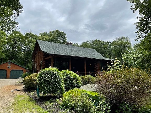 Privately nestled away on two acres of land you will find this peaceful and cozy log cabin home of your dreams in Brimfield, MA. This is a house built for all seasons. With a master bedroom on the first floor and 2 bedrooms with a full bath on the second floor, there is more than enough room for everyone. Boasting soaring ceilings, hardwood floors, a sun drenched family room that opens to a huge cedar deck overlooking the tranquil landscape, a fenced in dog kennel, radiant heated floors for cozy winters, fireplace, wood and another pellet stoves to snuggle up to on cold winter nights, a walk out basement, 2 car heated garage for all your winter projects and a 50 year composite roof. The town truly comes alive in the spring and summer where you’ll have the benefit and advantage of living right down the street from Brimfield's famous antique flea markets. I could go on and on, but you should come see it for yourself and fall in love with this beautiful property!