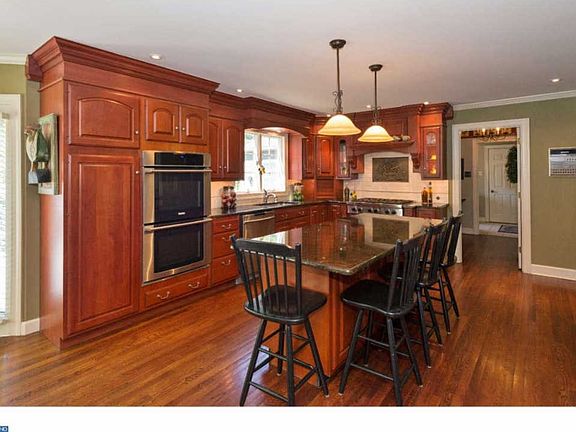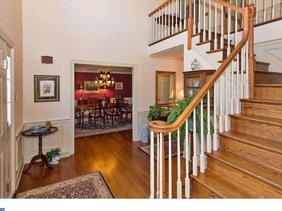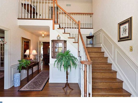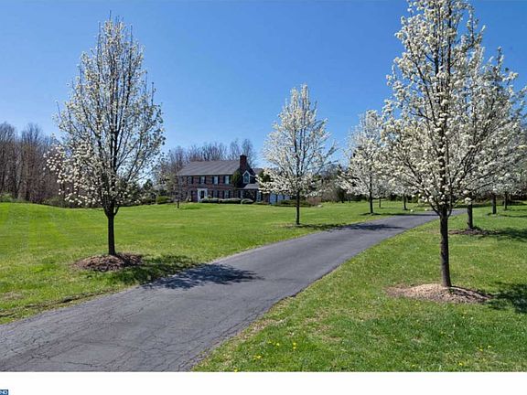This exceptional executive estate in Doylestown is situated just minutes from the borough. Set back at the end of a wonderful tree lined driveway over looking a beautifully maintained 2 acre lot and backs up stunning mature private land. This custom built home boasts 4650 square feet, 5 bedrooms and 3.5 baths. New Roof and New High Efficiency Heating System recently installed.The 2 story center hall foyer entry is bordered on either side by a large dining room and a formal sitting room/billiards room. Rich hardwood floors flow through the home leading you to the large gourmet eat in kitchen with french doors that open to the back patio. The kitchen is adorned with cherry cabinets, granite counter tops and top of the line stainless steel appliances which include a 6 burner Wolf stove. The fantastic great room features a brick fireplace, exposed beams, 16 ft high vaulted ceilings, custom Hunter Douglas wooden blinds and is decorated to capture the essence of bucks county. Main floor in law suite/5th bedroom is a huge bonus as it has its own full bath, sitting room, kitchenette and also has french doors leading to a back patio. There is a magnificent Master suite upstairs with 14 ft high ceilings, updated master bath and 2 walk in closets. Rounding out the upper floor are 3 great size bedrooms with a completely renovated hall bath. Outside you can enjoy sitting on your brick patio , take a soak in the built in hot tub on the timber tech deck or simply enjoy the expansive property and its peaceful setting. Book your private tour today.