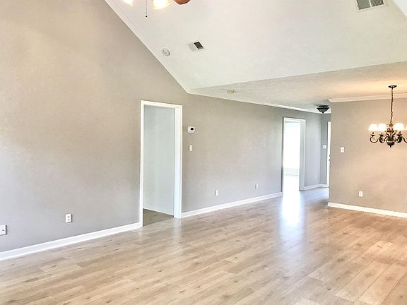 Move in ready 3 bedroom 2 full bathroom home. New floors & fresh paint. High living room ceiling. No carpet. Separate laundry room & 2 car garage. Formal dining area. Kitchen pantry. Double primary bath vanities with separate soaking tub, walk-in shower, walk-in closet, & private commode room. Walk out onto your welcoming porch with a pergola and good size back yard.