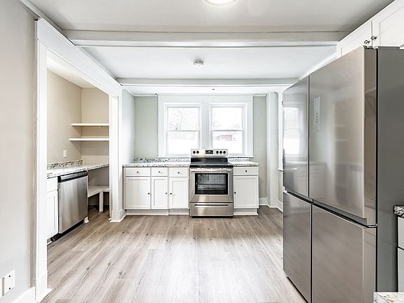 Come take a look at this renovated 4 bedroom 1.5 bath home! Brand new kitchen, refinished hardwoods and renovated baths are just a few of the many features you'll find inside. The first floor offers a dining room, living room, half bath and kitchen. On the second floor you have 4 spaciously sized bedrooms with a bonus room in the attic. Brand New appliances and afforadable gas heat!
