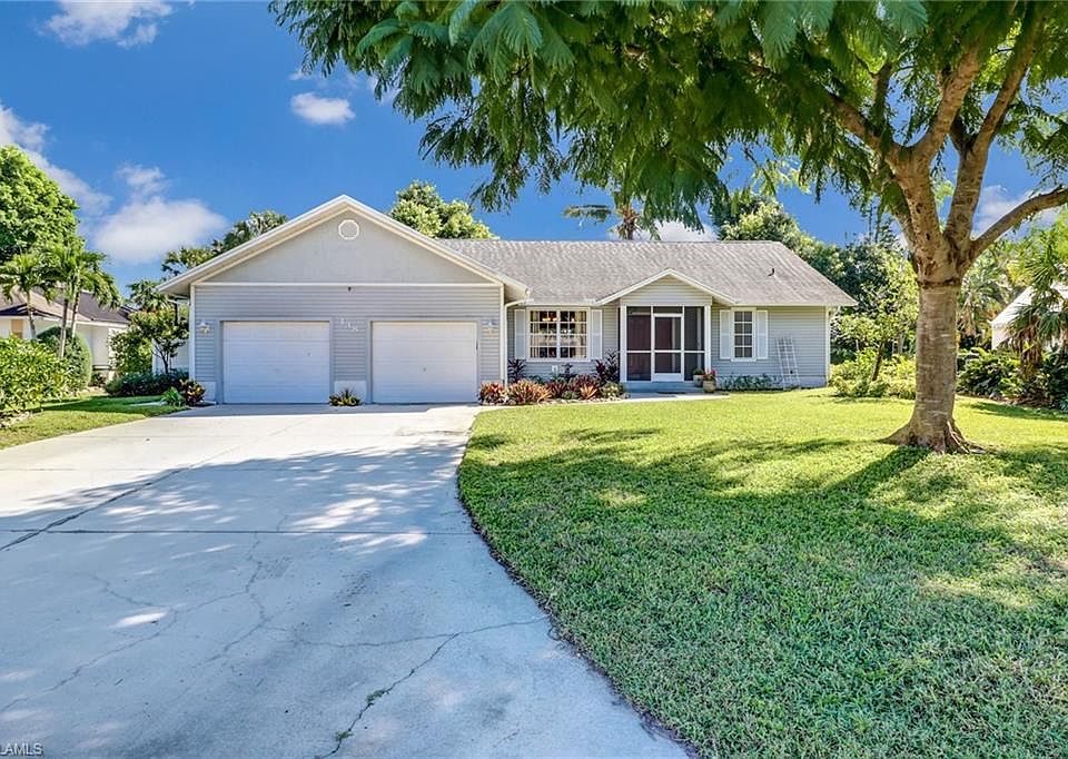 Don't miss your opportunity to own this beautiful home located in the community of Palm River in North Naples. This is a fantastic location in an A-rated school district and only minutes to the worlds best beaches, shopping, entertainment, golfing, and more. This home is located on a cul-de-sac and features a large kitchen with an island, a stone fireplace, a walk-in pantry, vaulted ceilings, and a heated pool & spa. Sliders in master bedroom, living room and family room all open out to the beautiful pool and lanai area. There is also an additional room in the garage that can be used as extra storage or a bonus room. Open House this Sunday 11/4 from 1pm-4pm.