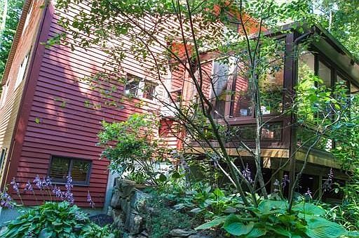 Your Dream Home Awaits. Nestled on 2 acres your new home brings together nature and California pueblo inspired beauty with custom wood work, 2 rounded stone-faced fireplaces (kitchen and living room), beamed ceilings and hardwood floors and doors throughout. A light filled sun room off of the kitchen overlooking your personal waterfall and cascading garden oasis is a spot just begging for a glass of wine and a good book to enjoy. Additionally the main floor includes a home office with custom built ins, 1/2 bath with laundry room, pantry and hallway closet. Upstairs you will find 2 well sized bedrooms and full bathroom with tub and shower. Master Bedroom with jacuzzi tub highlighted by skylights is just awaiting to wash your daily stresses away. Follow the stairs down to the fully finished basement to discover an additional family room with exterior access through glass slider, kitchenette, full bathroom with walk in shower and bedroom. Don't wait to make this dream a reality!
