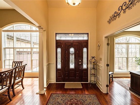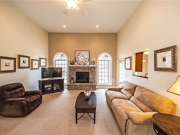 Hard to find brick ranch on a private 2 acre lot with great proximity to Cranberry & major roadways. Beautiful open entry. Stunning hardwood flooring spans the 1st floor living areas. Large windows in the den & dining room usher in the natural light. Columns, molding & trim accent the dining room & create a wide open floor plan. The soaring family room ceilings further expand the openness. The kitchen is classic with warm wood tone cabinetry, dark granite countertops & center island. The owner suite is a spacious retreat located on the home's opposite side from bedrooms 2 & 3. The suite features not one, but two walk-in closets, pretty tray ceiling, & private sliding glass door to the patio & gazebo area behind the home. Wired speaker system is found on both the 1st and lower level floors in addition to a 1st floor laundry. 4th bedroom is located on a second floor level above the garage & offers a private full bath. The lower level has a bar, fireplace, wine cellar & bonus room. Wow!!