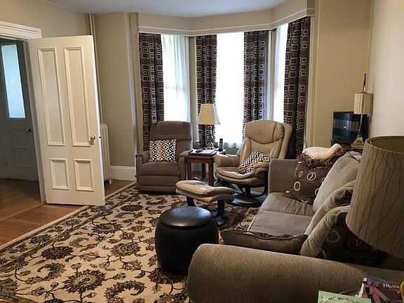 Fantastic 2 bedroom, first floor apartment in three-family Victorian home just off Reading Center, less than 5 minute walk to commuter rail, yet just minutes to Routes 95, 93 and 1. This sunny apartment is on the first floor, updated stainless steel appliances, solid service countertop, eat-in kitchen (16x10); living room with bay window, build-in cabinet, fireplace (18x13); two large sunny, with bay-window, bedrooms (16x 11); and a huge center hallway (24x 6) giving you 1250+ feet of living space. Coin-op washer dryer and space for open storage are in the basement. Each apartment comes with two off-street parking spaces. This is a non-smoking, no pets building, although we have been amenable to an indoor cat. Utilities of gas for heat/hot water ARE INCLUDED! Rent is $2075 per month with a one year lease.