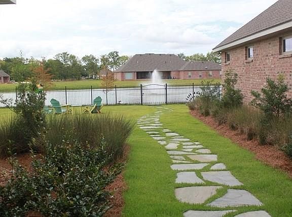 Beautiful custom built home (only 3 years old), Fully landscaped with irrigation and fencing in place. Relax and enjoy the lake view with fountain right out your back door! Great patio with electronic screen enclosure and fireplace! Inside you will find 4 spacious bedrooms with 3 baths, brick arch separates the living and kitchen area, spacious kitchen offers huge island plus copper sink with double ovens and 2 pantries! This master suite has a great view and a designers bath with claw foot tub, marble shower, custom built-ins and a closet you must see! A guest entry courtyard makes a great spot for sipping morning coffee. This home has an upgraded foam insulation package ,walk-up attic storage, surround sound and security system which includes cameras! See reserved items.