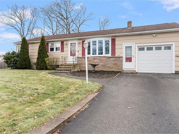 This one level ranch style home in Coventry offers 3 large bedrooms and 1 full bath. There are hardwood floors throughout the home and all bedrooms have ample closet space. The large bathroom features a brand new tub and surround installed December 2023. The full sized eat in kitchen offers stainless steel appliances, a brand new fridge installed January 2024, granite countertops and plenty of overhead cabinets. The home also features a large driveway that can fit 4 cars and attached garage that can be used for parking a car or additional storage space. Brand new garage door opener installed December 2023. Enjoy the private, fully fenced in yard that includes a fire pit and a large deck that was freshly painted that is perfect for entertaining! There is also a full sized basement with laundry and extra storage space with a brand new boiler installed in 2022. Convenient access to all local amenities!