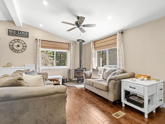 Nicely remodeled double-wide manufactured home on 2.2 acres. Just 14 miles from Colville, and just a few miles from Little Twin Lakes & Black Lake, this beautiful property has many wonderful features. Home includes tile & engineered hardwood floors throughout, 3 bedrooms and 2 full baths, newer kitchen & bath counters, w/ concrete countertops, comp roof, stainless appliances in kitchen, wood stove & electric furnace & two large partially covered decks. Property also includes fruit trees, lots of yard space w/abundant wildlife, borders year around Aspen Creek. 24x36 insulated finished shop w/wood stove & finished apartment upstairs, & covered roof area on 3 sides. The total covered shop area is 48x56. Great for parking, ATVs, firewood, camper trailers, or any other needs.