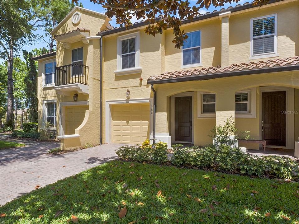 Step into the serenity of Mediterranean-inspired living with this stunning 1,800-square-foot townhome in the gated Montacino/Enclave community, ideally situated just off I-4 in Maitland. Fresh neutral interior and exterior paint ensure that the home is move-in ready, and preserved in pristine condition by its one owner who is offering a one-year home warranty to ensure immediate peace of mind for you! This low-maintenance home is perfect for anyone seeking a blend of comfort and convenience, featuring three bedrooms and two and a half baths across two meticulously designed floors. The first floor welcomes you with elegant tile flooring and crown molding throughout the kitchen, dinette, living room, and a convenient half bath off the entry. This open floor plan offers an abundance of storage (under-stairs storage) and the living room is wired for surround sound as a bonus! Here, the kitchen shines with 42-inch solid wood cabinetry, under cabinet lighting, tile backsplash, granite countertops, and a closet pantry including a breakfast bar that overlooks the family room/dinette area. Upstairs you'll find stylish wood-like laminate flooring (no carpet), the layout includes an expansive primary suite with a private balcony, a large walk-in closet, and a luxurious primary bath with dual sinks and a separate shower. Two additional bedrooms, a full hall bath, and a handy laundry closet complete the second floor, making daily living both practical and private. Additional features include an upgraded two-zone HVAC system and double-pane insulated tinted windows for efficiency, upgraded five-inch baseboards, six-panel interior doors, wrought iron designer handrails, wired security system, a pest defense system (tubes in wall), and a paver driveway/walk. Outside, the covered porch offers tranquil views of grassy open spaces, adding to the home’s appeal. Residents of Montacino/Enclave enjoy access to a resort-style sparkling pool and cabana overlooking the private Lake Charity, enhancing this community’s allure. With easy access to Downtown Orlando, Winter Park, theme parks, beaches, shopping, and restaurants, this property is not just a home but a gateway to a lifestyle of leisure and convenience.